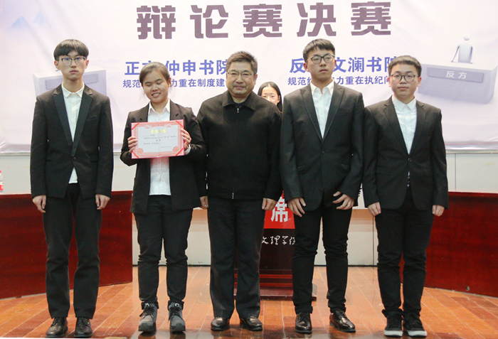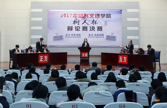 经过一个多月的角逐,12月20日,我校2017年“树人杯”辩论赛决赛在河西铁城科教馆举行。从全校10支辩论队中脱颖而出的仲申书院代表队和文澜书院代表队,围绕“规范约束权力重在制度建设还是执纪问责”展开了激烈辩论。最终文澜书院代表队夺冠,仲申书院代表队获亚军。