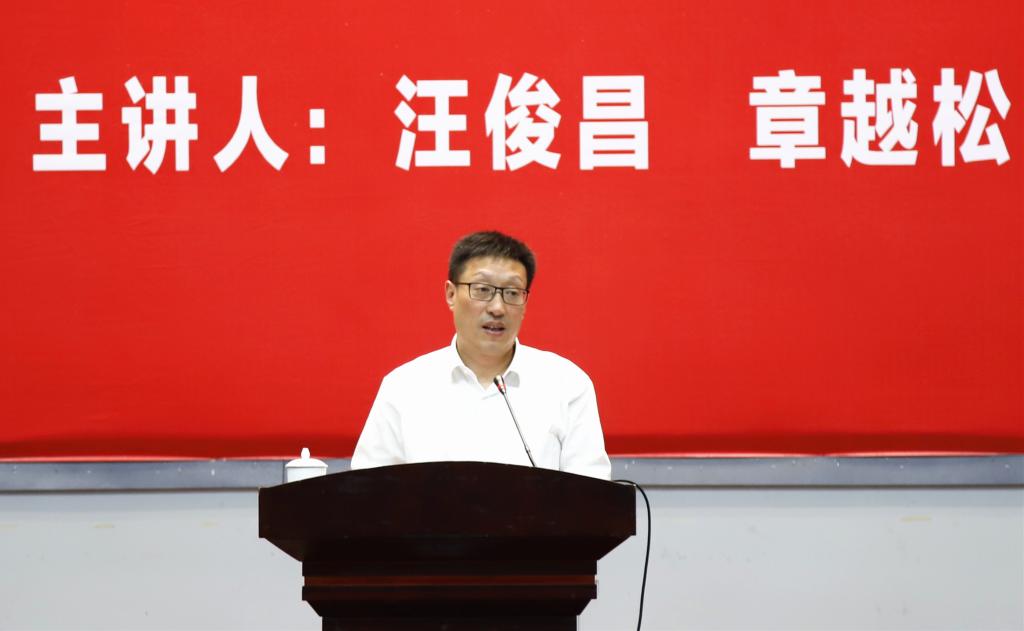 汪俊昌以“学习新思想  做德智体美全面发展的社会主义建设者和接班人”为题,将习近平总书记在北京大学师生座谈会和纪念马克思诞辰200周年大会上的重要讲话作为切入点,紧密联系高等教育工作现状和师生思想实际,紧扣习近平新时代中国特色社会主义思想,为在场师生上了生动一课。他强调,学习贯彻习近平总书记重要讲话精神要做到三点,一要学深悟透,将习近平总书记重要讲话精神转化为健康成长的思想养分;二要融会贯通,以重要讲话为指引切实做到思想自觉和行动自觉;三要知行合一,以青春奋斗响应习近平总书记的亲切关怀和殷切期望。汪俊昌勉励同学们要将习近平总书记的重要讲话内化于心、外化于行,切实做到爱国、励志、求真、力行,以社会主义建设者和接班人的使命担当,为全面建成小康社会、全面建设社会主义现代化强国而努力奋斗。