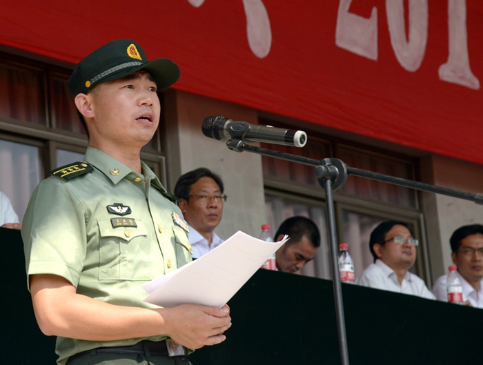 王建力代表学校党委行政,向浙江陆军预备役师官兵表示了最衷心的感谢和最崇高的敬意!向2017、2018级学生顺利完成军训任务表示热烈的祝贺!他希望同学们以这次军训为契机,继续保持军人雷厉风行的优良作风,坚定理想信念,敢于面对挫折,勤奋学习,勇攀高峰,勇做时代的弄潮儿!