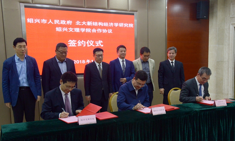 10月29日,在2018绍兴“名士之乡”人才峰会上,绍兴市人民政府、北京大学新结构经济学研究院和我校正式签订三方合作协议,共建新结构经济学长三角(绍兴)研究中心。