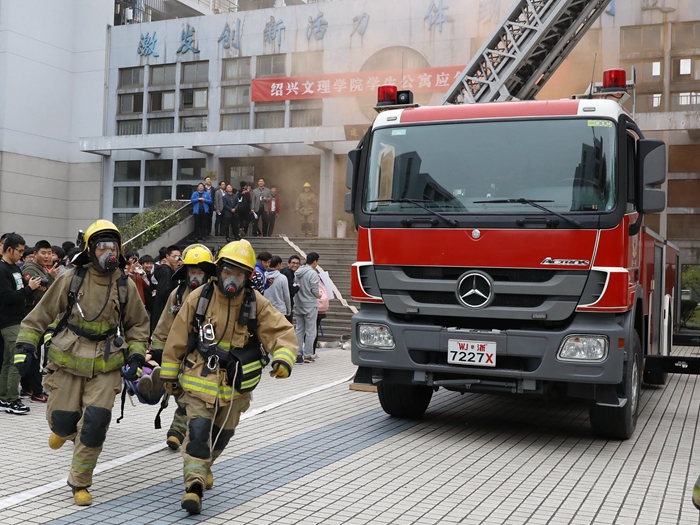 11月14日中午,学校在南山公寓广场开展校2018年“119”消防安全宣传月活动暨做好今冬明春火灾防控工作启动仪式。校党委副书记唐和祥出席启动仪式,他强调了做好今冬明春火灾防控工作的重要性并指出,构建平安和谐的校园需要师生的共同努力,要多学习消防安全知识并争做宣传者和传播者,让安全知识和自救技巧在校园中广泛传播。相关职能部门负责人,各学院学工书记,本科生、研究生、留学生代表等约600余人参加启动仪式。启动仪式上,学校联合绍兴市消防支队举行学生公寓消防应急疏散演练和公寓违禁大功率电器现场销毁等系列活动。