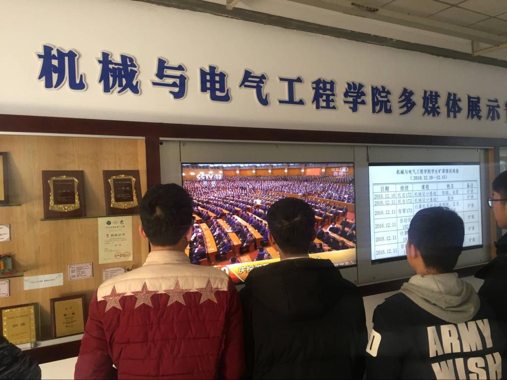 机械与电气工程学院各党支部牵头组织师生集体观看了大会直播,同时,学院媒体宣传窗也进行了同步直播。“深受鼓舞,倍感振奋。”收看直播的师生们纷纷表示。“我们对党和国家四十年来取得的辉煌成就感到无比自豪与骄傲。”学院金梦琪老师说。