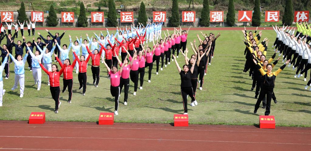20日,300余名教职工在南山田径场参加“运动生活 乐享人生”工间操比赛。各二级分工会组成18支代表队,热情昂扬、精神饱满、动作规范、整齐有力,展示了新时代女教职工的健康形象。