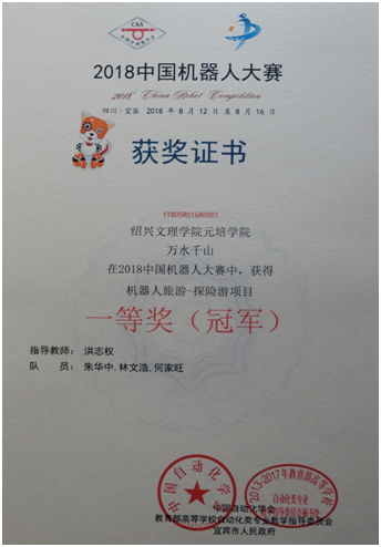 到了决赛地点,朱华中发现有些赛道的道型是之前在校训练期间从来没有接触过的,复杂道型的转弯、路障对机器人来说是极大的考验。尽管困难重重,但是朱华中和团队成员通过共同努力,夺得了全国二等奖的好成绩。更重要的是整个团队收获了大赛经验。