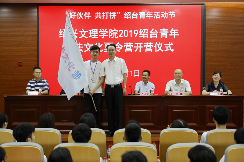 张宏向绍台青年书法文化夏令营代表授旗。严成武宣布夏令营正式开营。