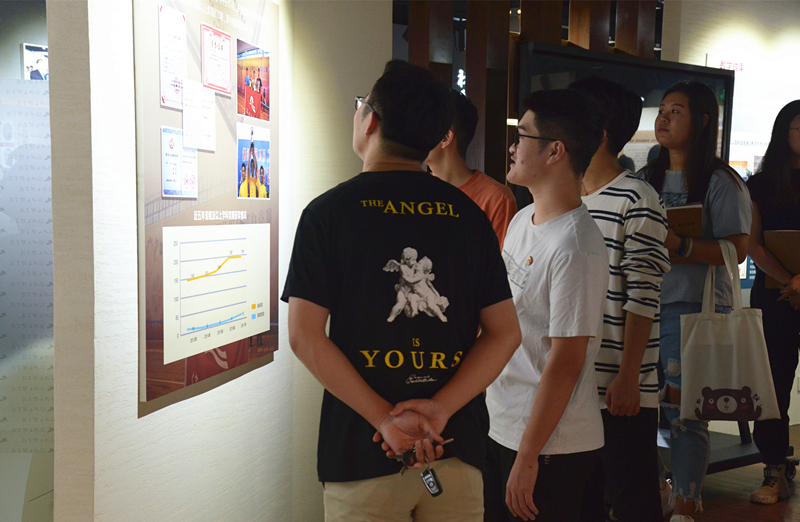 、人才队伍等展区组成,共有展板150余块,实物100余件,记录了我校自建校以来的点滴历程,是我校历史发展、文脉传承、精神文化体系和校园文化的重要物化凝练,具有深厚的历史积淀和文理特色,是开展校史教育、爱校教育的重要载体。