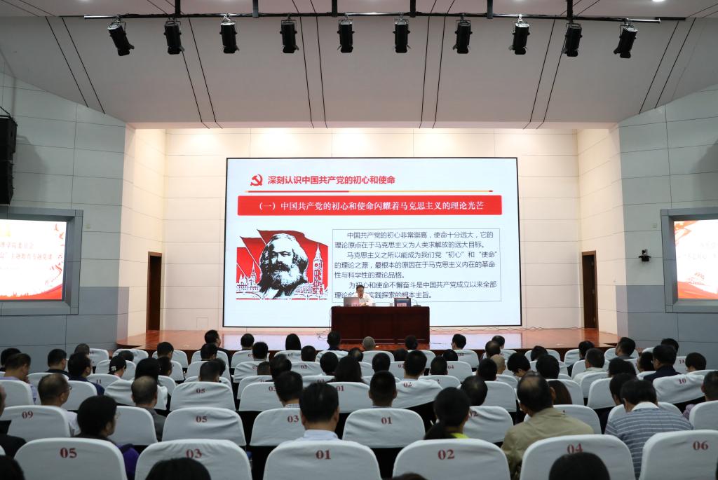 汪俊昌指出,习近平新时代中国特色社会主义思想内涵丰富,博大精深,“为人民谋幸福、为民族谋复兴、为世界谋大同”是深刻理解和全面把握其思想精髓的“金钥匙”。他回顾了马克思的生平,回望了中国共产党98年的光辉历程,对比了从1949年新中国诞生到2018年的70年间的发展数据。他指出,中国共产党的初心和使命闪耀着马克思主义的理论光芒,中国共产党的初心和使命改变了近代中国的历史命运,中国共产党的初心和使命奏响了文明发展的时代强音。