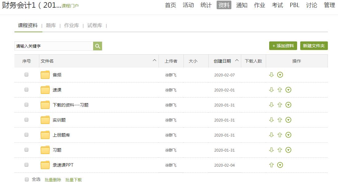 1.学习通教学平台建设。利用超星学习通平台搭建课程章节内容,上传相关资料。这些资料主要靠平时教学的积累,可以先将其上传至学习通“电脑同步云盘”,再导入课程章节或课程资料中。速课的录制可以利用学习通自带的功能,也可以用WPS软件录制或者PPT录屏等。以下是课程的部分资料。