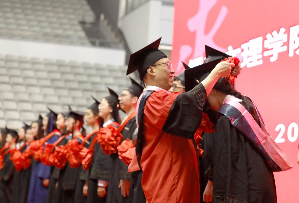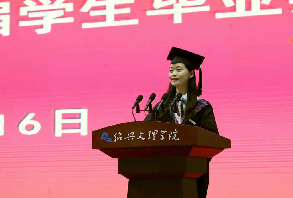 初见时,你们从广袤的祖国各地来到绍兴这座美丽的江南古城,稚气未脱的脸上带着青涩和懵懂。在文理,你们不负韶华,356人被评为省、市优秀毕业生,用出色的成绩为大学生活画上了圆满的句号。你们追求卓越,359人考取博士、硕士研究生,即将奔赴曼彻斯特大学、浙江大学等高校深造。你们立志奉献,17人报名参加“西部计划”、22人应征入伍,将到祖国最需要的地方贡献青春和才智。还有更多的同学积极投身学术科研、文体活动、社会实践、志愿服务,综合素养全面提升。成长的背后,我看到你们用汗水收获了学识涵养,用拼搏实现了青春梦想,用奋斗惊艳了文理时光。在这里,你们也见证了学校的发展。你们参与了教育部对学校本科教学工作的审核评估,见证了学校被列入省“十三五”高校设置规划,并顺利通过省高校设置评议委员会专家组现场考察,庆祝了学校110周岁的生日,也迎来了投资62亿元的校园改扩建工程的正式启动。不久的将来,这座具有江南水乡特色的“千年古城•现代大学”一定会在古越大地上崛起。