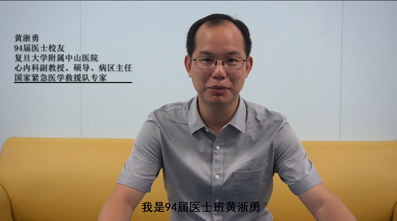 校友代表、复旦大学附属中山医院心内科副教授、硕士生导师、病区主任、国家紧急医学救援队援鄂专家、94届医士专业校友黄浙勇视频连线讲话。他分享了自己驰援武汉的亲身经历,向毕业生分享了人生感悟,希望同学们学有所成、各有所长,在各自的岗位上成为精英,演绎出精彩的人生。