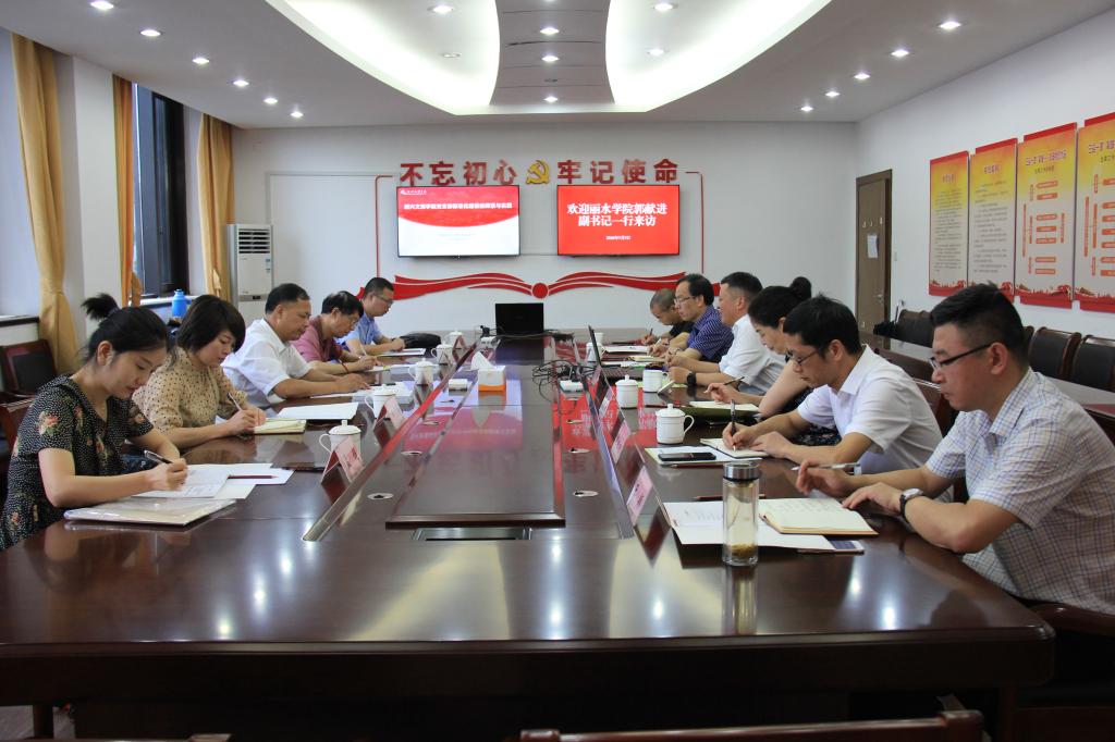 7月7日上午,丽水学院党委副书记郭献进,党委委员、组织部部长余德华一行5人来校交流考察党建信息化建设和统战工作。校党委副书记沈赤,党委委员、组织部部长宣绍龙以及党委统战部、机关党委、信息与教育技术中心等部门负责人接待了考察组一行,对他们的到来表示了热烈的欢迎。