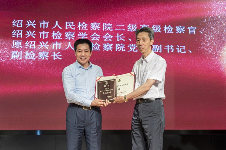 在“梁柏台法学院”客座教授聘任仪式上,名誉院长翁国民教授依次为陈理平教授、梁孟伟教授、陶建军教授、李旺荣教授、楼东平教授、虞伟庆教授、冯坚教授、俞岚教授、俞友根教授、喻文莉教授颁发聘书。法学专业1801班宋利同学代表法学院学生发言。