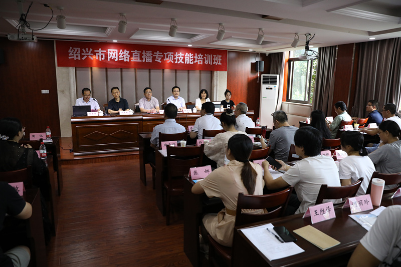 7月21日上午,由我校承办的绍兴市首期网络直播专项技能培训班在我校职业与继续教育学院三楼报告厅开班。副校长柳国庆,绍兴市人力资源和社会保障局副局长柯建华,绍兴市新闻传媒中心党委委员、绍兴传媒集团副总经理吴浩军,绍兴市职业技能开发指导中心、绍兴传媒集团文创公司、校职业与继续教育学院相关负责人出席开班仪式。