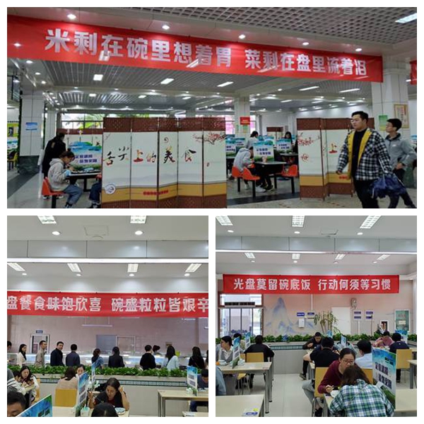加强宣传,营造节约氛围。各餐厅在醒目位置张贴“光盘行动”倡议书,电子屏滚动播放各类“节约粮食”的宣传标语,餐厅内悬挂生动形象的宣传横幅,通过这些氛围营造,让节约意识入脑入心,进而促进师生养成节约的习惯。