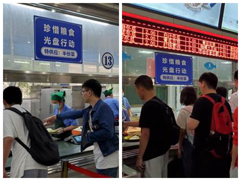 优化服务,开设节约专窗。各餐厅开设节约专窗,推出半份菜、小份饭,节约专窗推出第一天就受到许多学生的欢迎,前来就餐的学生表示,“半份菜”的形式不仅能避免浪费,而且能选择更多的菜品,既营养又健康。