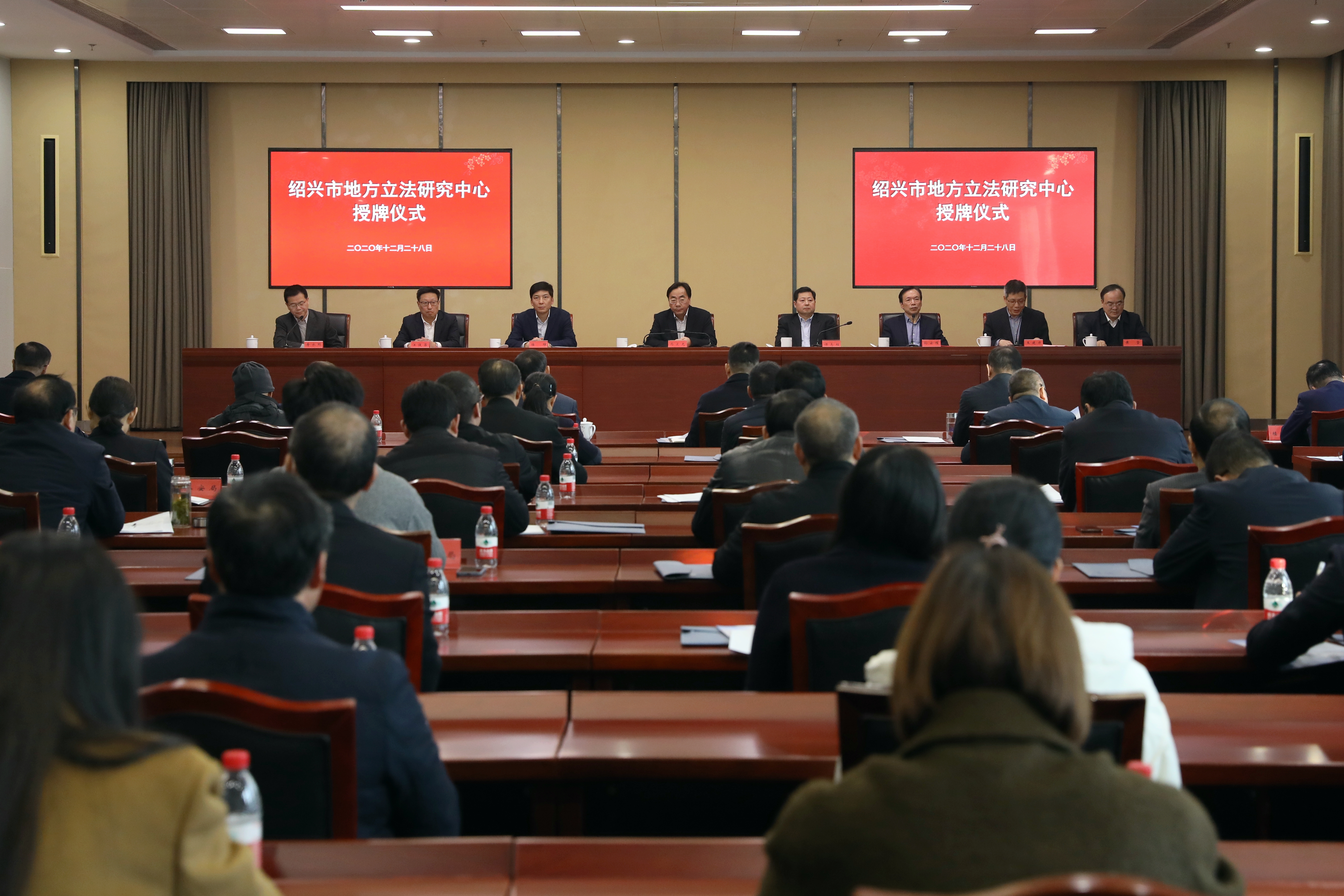 马卫光为绍兴市地方立法研究中心授牌,汪俊昌接牌。