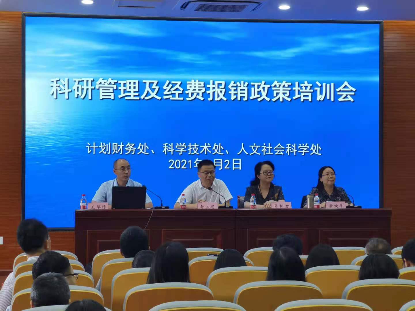 为积极推动科研自主权下放,加快完善校院两级管理,进一步提高科研人员的规矩意识和底线意识,由学校计划财务处、科学技术处、人文社会科学处联合主办的科研管理及经费报销政策培训会于6月2日下午在岩土大楼7楼报告厅举行。副校长寿永明,计划财务处、科学技术处、人文社会科学处负责人出席培训会,各二级学院科研(学科)院长、科研(学科)秘书、办公室主任、财务协助员、项目和平台负责人等科研人员150余人参加培训。