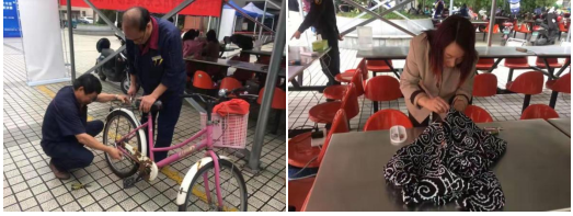 5月19日中午,后勤管理处协同新宇物业在河西校区餐厅门口开展了“物业优质服务月”之免费缝修补洗活动。活动当天,新宇物业员工早早地在餐厅门口摆好了摊,有的负责缝补,有的负责维修,各司其职。同学们看到后,纷纷拿着衣服过来找物业阿姨缝补,高超的技术获得了同学们的认可。共提供缝补衣物,小电器维修,电瓶车、自行车打气,框架眼镜免费清洗等服务,共服务师生50余人次,深受师生好评。