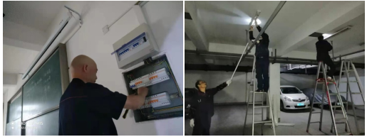 随着校园改扩建工程的深入推进,校园内部分楼宇时有断水断电发生,物业工程运维部门加强应急处置抢修。同时,运维部门还加强日常设备房管理、设施设备维护、电气线路检测、电气火险问题巡查,排查漏电用电安全隐患。针对电瓶车充电私拉乱接问题,加强对公共区域充电插座排查断电,排除消防安全隐患。