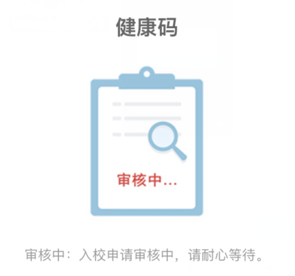3.申报结束后,请耐心等待学校的审批,此时健康通行证的界面会变成如下界面,审核结果会通过企业微信的消息中心发给申请人。