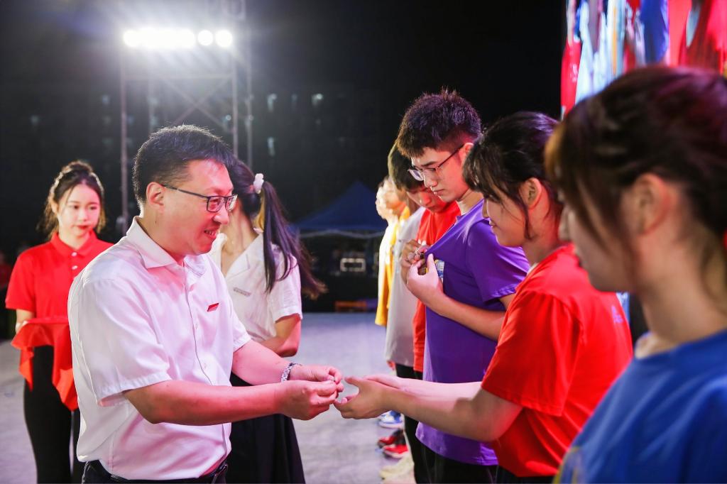 汪俊昌为新生代表佩戴校徽