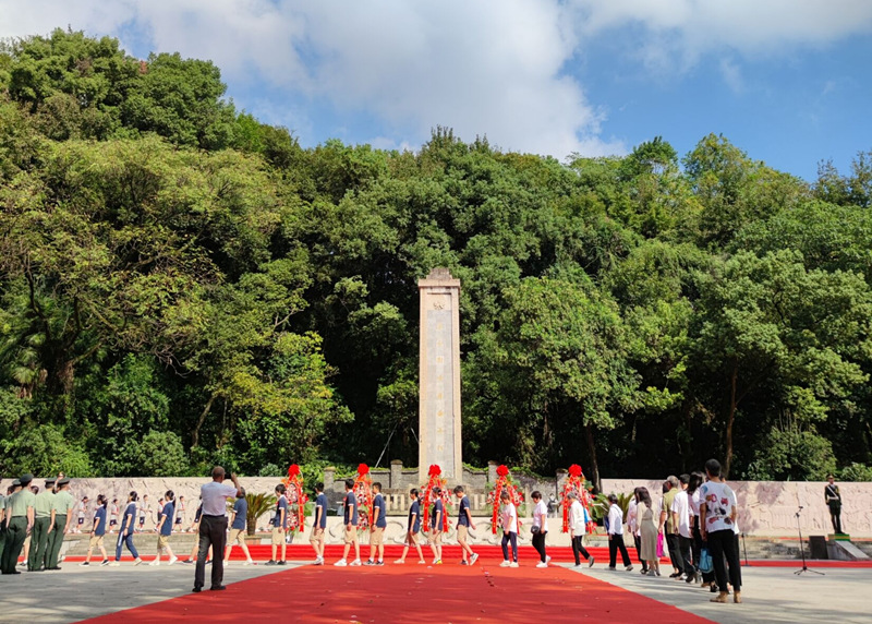 2021级新生党员、研究生党员代表“缅怀革命先烈•传承红色基因”主题教育活动也在府山烈士陵园开展。绍兴市新四军研究会会长韩茂仁,学校党委组织部、化学化工学院党委相关负责人,2021级新生党员,化学化工学院研究生党支部全体党员参加活动。