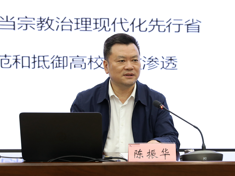 陈振华就如何做好防范和抵御高校宗教渗透作了专题辅导。他从习近平新时代中国特色社会主义思想的宗教工作篇、新形势下宗教工作面临的新挑战、争当宗教治理现代化先行者、防范和抵御高校宗教渗透四个方面进行了深入阐述。他指出,要深刻领会习近平总书记关于宗教工作的重要讲话精神,深入理解总书记“宗教问题始终是我们党治国理政必须处理好的重大问题,宗教工作在党和国家工作全局中具有特殊重要性,关系中国特色社会主义事业发展,关系党同人民群众的血肉联系,关系社会和谐、民族团结,关系国家安全和祖国统一”的重要表述。他着重从大力开展马克思宗教观和国家宗教政策法规宣传教育工作、依法妥善处理大学生参与校园传教和非法宗教聚会活动、落实好防范校园宗教渗透的各项措施、做好学校民族工作等角度就做好校园宗教工作进行了全面深入的辅导。