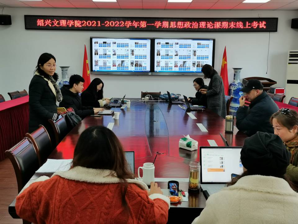 1月4日上午9点,马克思主义学院《中国近现代史纲要》线上考试正式开考。本次考试涉及36教学班,共计考生1638人,史纲教研室全体教师集聚办公室,开启线上集中监考模式。校教学督导陆仲坚老师到监考室督查指导。