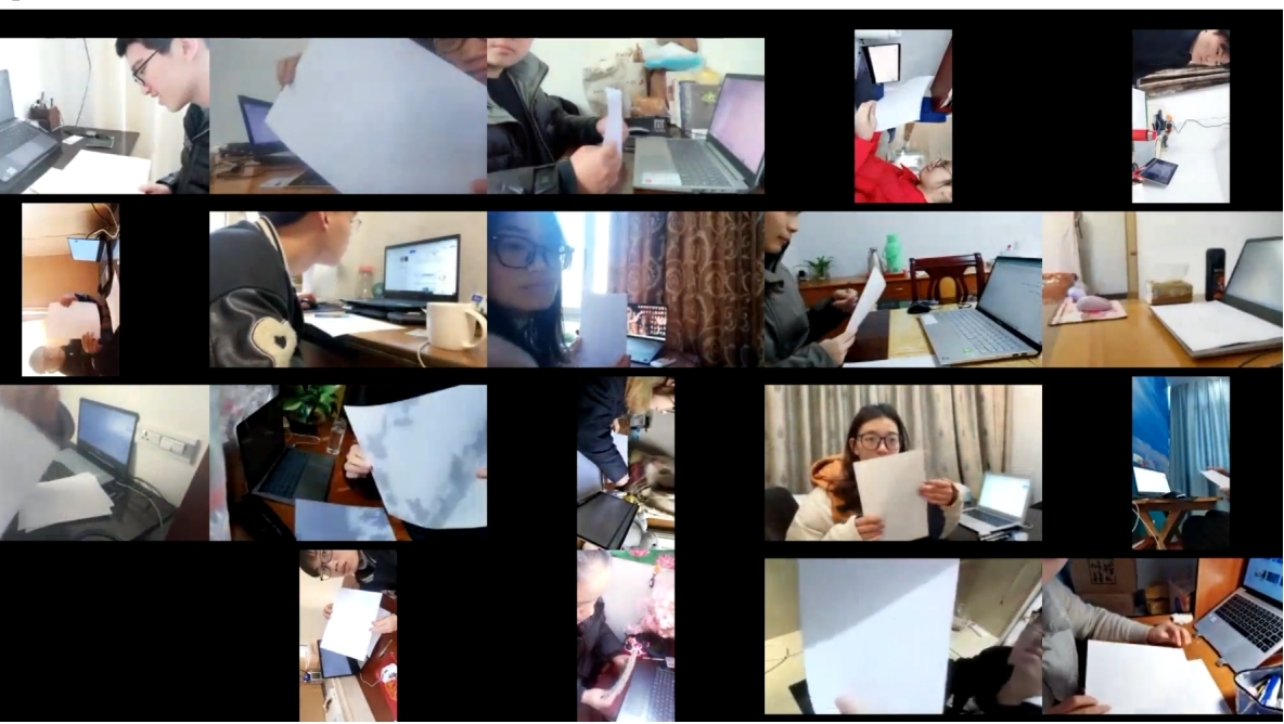 数理信息学院大学物理课程组先摸排学生的客观条件。由于大学物理课程偏重计算,所以在考试中要求学生准备六张白纸用于答题和打草稿,其中选择题在学习通上直接完成,填空题和计算题直接做在白纸上,最后拍照上传学习通。由于部分学生电脑没有前置摄像头,所以电脑只用于接收学习通平台发放的试卷,手机从侧后方拍摄进行监控,使电脑屏幕、学生本人、考试桌面等都在监控范围内,杜绝作弊。课程组对考试过程中网络的不稳定性也做了综合考虑,并给出了相应预案,最终形成了监考教师和考试学生相应的须知要求。