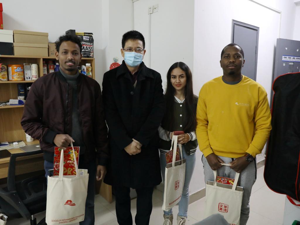 在国际留学生公寓,王建力向来自索马里、津巴布韦、土库曼斯坦等国的留学生致以诚挚的问候和新春的祝福,希望他们能在寒假中充分感受中国文化,同时理解并支持防疫措施,过一个平安快乐的中国年,为接下来的学习和生活做好全新的准备。