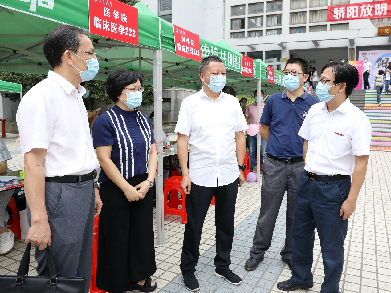 赵阳一行在各报到点慰问工作人员,了解新生报到情况,查阅相关资料,并要求相关部门和老师要及时协调解决新生入校后学习生活中遇到的困难,创造优良的育人环境。在学校绿色通道报到处,赵阳告诉学生有任何困难都要及时和班主任、辅导员老师沟通,学校会充分保证大家正常的学习生活。在各学院迎新报到处,赵阳叮嘱各班主任老师、专业教师,要充分发挥专业优势,快速引导专业入门、培养学生专业兴趣、做好学生的学术启蒙。在文澜书院,赵阳和学生志愿者一起拍照并和新生亲切交谈。新生刚来到学校,对环境十分陌生,赵阳生亲切询问同学们的家乡、对于住宿条件是否满意、生活上有什么不适等,并勉励同学们要珍惜大学时光,学有所成。大一新生们表示对新学校、新生活带着期许,表示自己很快就能适应大学生活。