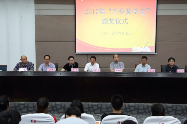 6月7日上午,2017年兰亭奖学金颁奖仪式在我校兰亭书法艺术学院举行。浙江省书协主席鲍贤伦校友,亚厦控股副总裁、中文89届王震校友,校党委副书记沈赤,校友总会会长宋培基,对外联络处负责人以及兰亭书法艺术学院师生代表等参加颁奖仪式。