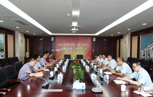 7月8日,我校和绍兴银行在绍兴银行总行举行“战略合作”签约仪式。绍兴银行丁国兴董事长,校长叶飞帆,学校教务处、经济与管理学院、绍兴银行相关领导及银行相关部室负责人参加了仪式。签约仪式由绍兴银行王国海行长主持。 仪式上,丁国兴和叶飞帆先后致辞并就人才培养(普通专业+模块“绍兴银行班”形式)、业务合作签订了“战略合作”协议。
