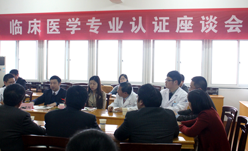下午,专家与附属医院的领导、临床教学管理人员及临床教师召开座谈会,主要了解医院老师在临床教学、实践实习等涉及人才培养的情况;与高年级学生召开座谈会,咨询学生在专业培养和专业技能掌握方面等内容。