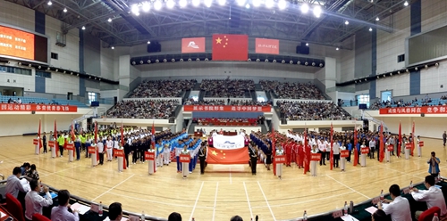 10月21日下午,我校第二十一届运动会开幕式在河西体育馆隆重举行。校领导周达军、叶飞帆、唐和祥、沈赤、杜时贵、华小洋、邱卫东、杨大明,校党委委员柳国庆、胡保卫出席开幕式。各二级学院负责人、校运动会组委会委员、各书院院长、各职能部门负责人在主席台就坐。参加此次开幕式的还有来自全校各书院的师生代表3500余人。本届运动会组委会主任、副校长寿永明主持开幕式。