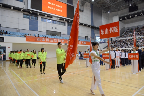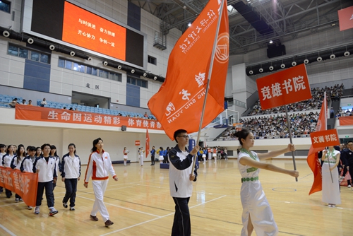 在观看了校党委宣传部为本届运动会创作的专题微电影后,学生代表高举国旗、校旗、会徽,书院、留学生、教职工代表团依次入场。各入场方队极具专业特色和运动精神的展示,以及精心编排的方阵表演赢得观众台上阵阵掌声。今年是我校首次尝试以书院为单位组织参加运动会。入场仪式上,11位书院院长带领着各自书院的运动健儿们,迈着整齐矫健的步伐,喊着铿锵有力的口号,充分展现了书院深厚的文化内涵和当代大学生的青春风采。值得一提的是,今年我校留学生首次组队参赛。在开幕式上,这支由来自美国、墨西哥、韩国等13个国家的留学生组成的代表团引人注目,为此次校运会增光添彩。