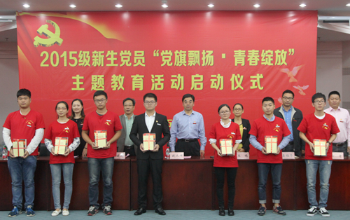 10月12日下午,我校2015级新生党员“党旗飘扬•青春绽放”主题教育活动启动仪式在图书馆报告厅举行。校党委副书记钱水祥出席仪式,相关二级学院副书记、组织员和全体2015级新生党员等70余人参加活动。启动仪式由党委组织部副部长王嫣主持。