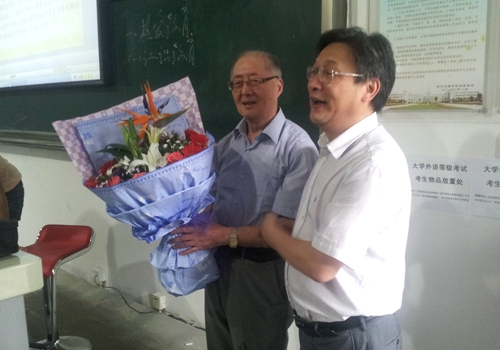 随后,周达军书记还前往理工楼看望了正在给学生上课的老校长陈祖楠老师。在第三十个教师节里,陈祖楠老校长依然在发挥余热,给学生讲授怎样当一个好老师。周达军书记向他送上了诚挚的祝福,并关切地询问了老校长的身体情况。