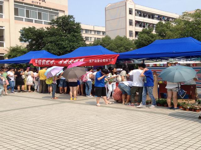 在国庆节到来之际,为了让学校教职工享受更好的服务,学校工会联合资产经营公司分工会开展商品优惠供应服务活动。