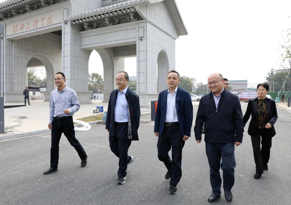 11月2日下午,绍兴市人大常委会副主任马国灿、市人大教科文卫工委主任吕智飞一行调研我校改扩建工程。副校长、改扩建专班办公室主任黄坚,党办、校办、基建处负责人陪同调研。
