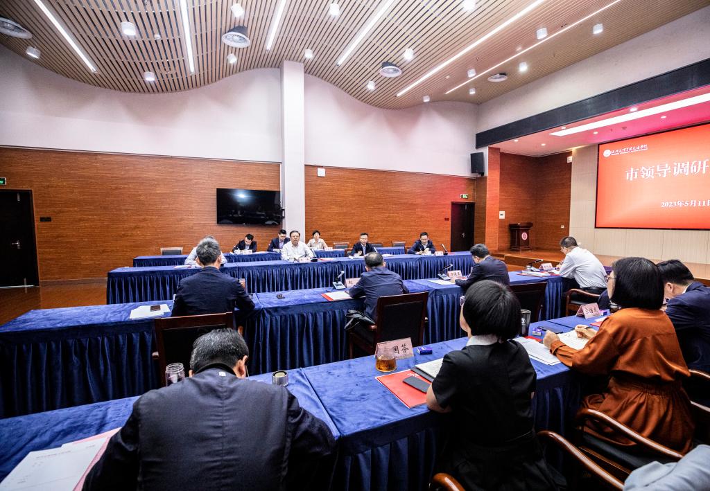 5月11日上午,绍兴市委常委、副市长王涛一行赴元培学院调研学院办学情况、检查指导校园安全工作。绍兴市委副秘书长、市教育局局长姚国海,市委副秘书长王荣彪,市政府副秘书长高波陪同调研,校党委书记汪俊昌、校长赵阳、副校长陈均土,办公室和元培学院相关负责人参加。