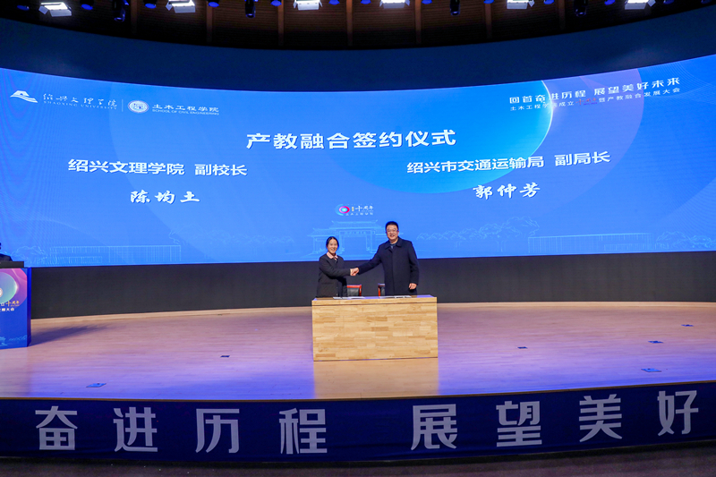 12月23日,土木工程学院成立十周年暨产教融合发展大会在风则江大讲堂报告厅召开。中国工程院院士、浙江省岩石力学与地质灾害重点实验室主任杜时贵,校党委书记汪俊昌、校长赵阳、副校长陈均土,绍兴市交通运输局副局长郭仲芳,越城区人民政府副区长谷丰出席大会。学校相关部门负责人、土木工程学院产教融合合作单位领导、土木工程学院校友代表、土木工程学院全体教师及部分学生代表参加大会。