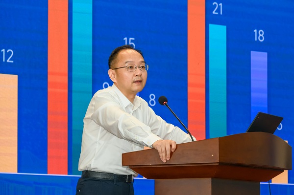 赵阳从科研工作现状和工作举措两个方面作科研工作报告,辅以图表的形式分析我校各类别、各学院近年来在科研奖项和科研项目等方面取得的工作成效,分析学校科研工作存在的不足。