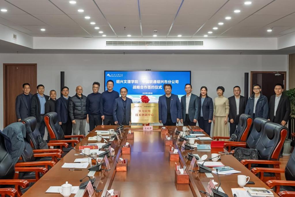 中国联通浙江省分公司、绍兴市分公司相关负责人,学校办公室、科学技术处、计财处、地方合作处、信息技术中心及数理信息学院主要负责人等参加签约仪式。