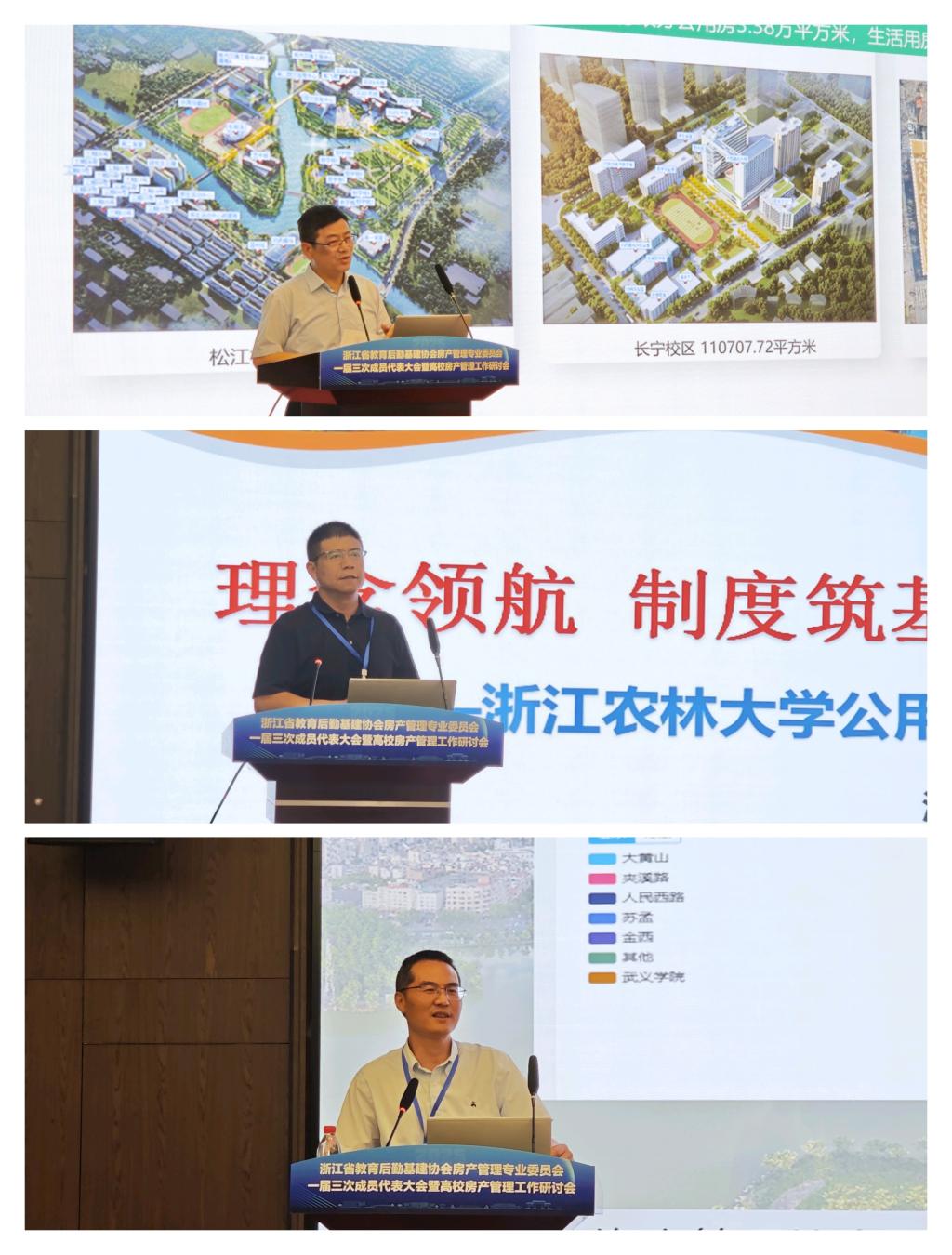 上海工程技术大学张志刚、浙江农林大学陈培金、金华职业技术大学应进平三位专家分别作题为《数智赋能 分类推进学校房产资源优化破局”》《理念领航,制度筑基,多措并举提升治理效能——浙江农林大学公用房及国有资产管理工作经验汇报》《抓住四个重点,推进不动产管理再上新台阶》的精彩讲座。