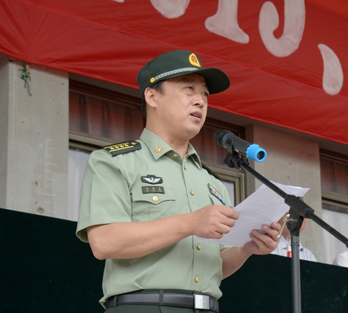 唐和祥宣读关于表彰军训先进连队、优秀教官的决定。A2连(纺织服装学院)、A7连(机械与电气工程学院)等20个连队获先进连队,杨王程、朱志旺等20名教官获优秀教官。