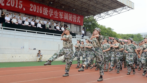 9月12日上午,2015、2016级学生军训闭营仪式在南山田径场隆重举行。2015、2016级学生身着统一迷彩服,以饱满的精神状态,昂扬的斗志、整齐的队列接受检阅。