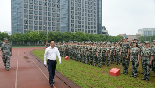 王建力讲话。他代表学校党委行政,向浙江陆军预备役师官兵表示了最衷心的感谢和最崇高的敬意!向全体指导员和各有关部门的辛勤工作表示衷心的感谢!向2015、2016级学生顺利完成军训任务表示热烈的祝贺!王建力高度肯定了2015、2016级学生通过军训取得的成果。他指出,通过2周的军训,同学们不仅系统接受了军事技能训练,培养了英勇顽强、业务过硬的军人作风,更坚定了理想信念,加强了组织纪律性和团队协作精神,同时也增强了国防观念,增长了军事知识,树立了强烈的担当意识和社会责任感。他希望同学们把个人理想融入民族振兴的伟大事业中去,为实现中华民族伟大复兴的中国梦贡献青春和力量。