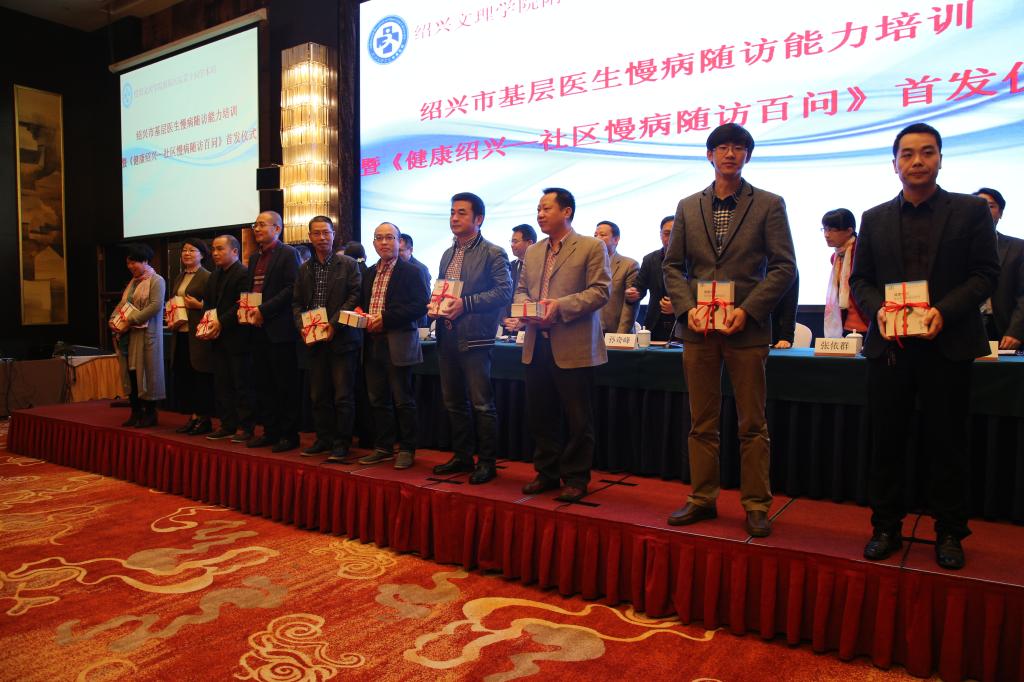 会议现场,医院将出资编印的2000余本《健康绍兴——社区慢病随访百问》赠送给了全市各乡镇卫生院,帮助社区责任医生提高慢性病防治知识与技能。