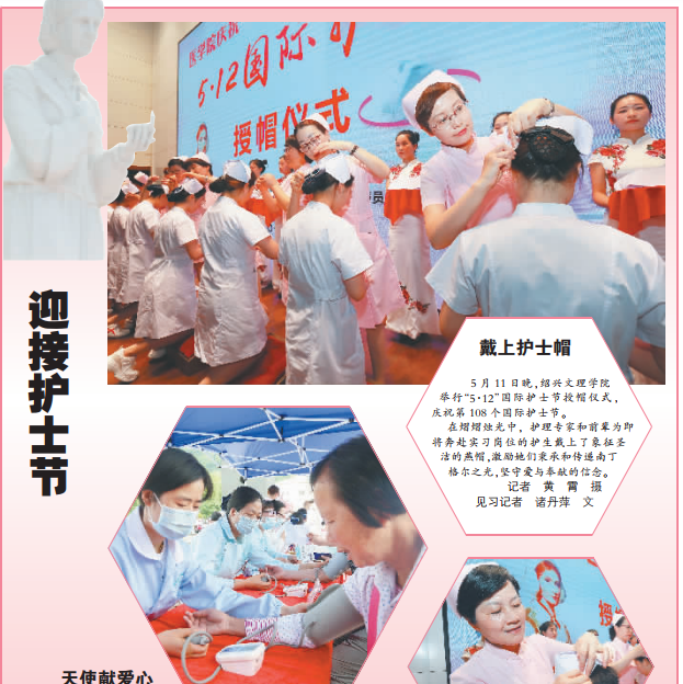 绍兴日报5月12日以图片新闻形式报道了我校举行的“5.12国际护士节授帽仪式”,新闻链接:http://epaper.sxnews.cn/sxrb/html/2019-05/12/content_182745_1079192.htm